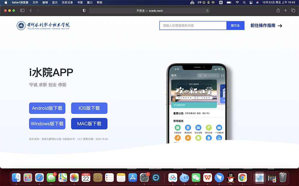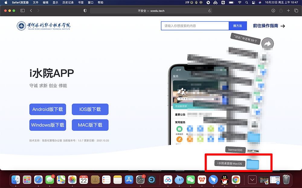 2.在右下方的“下载文件夹”中选择“i水院桌面版MacOS”后单击打开。