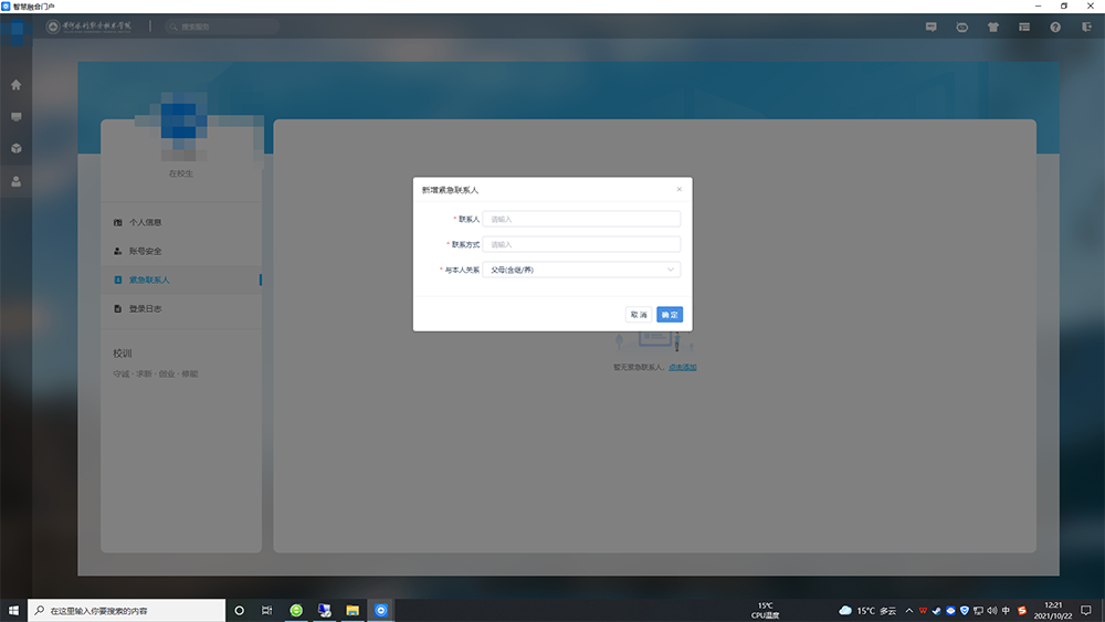 【操作路径】用户点击紧急联系人,进入页面可以新增、编辑、删除紧急联系人信息。