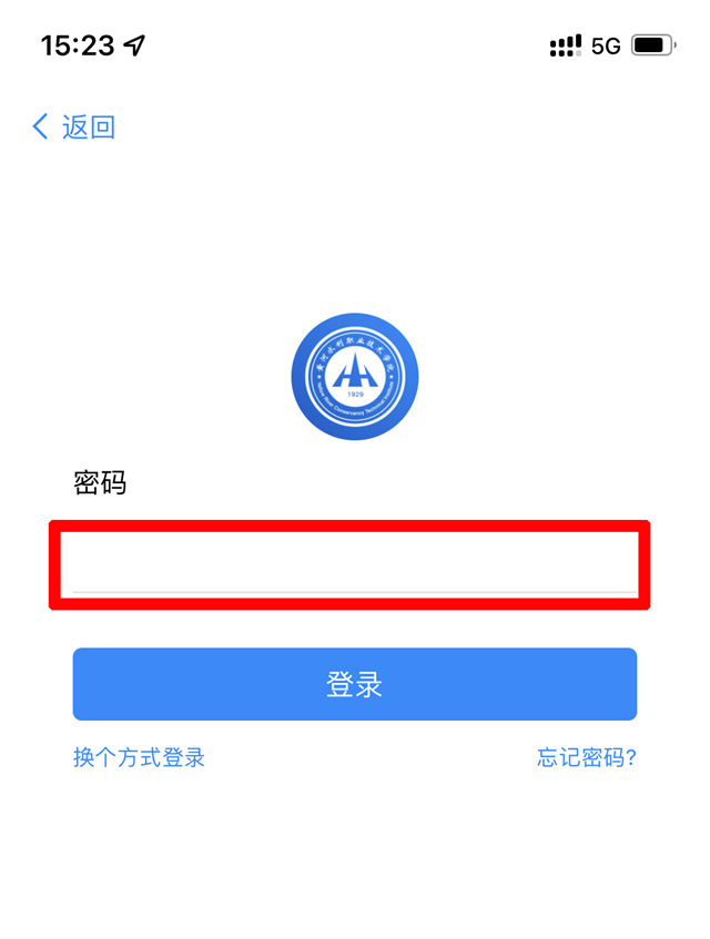 5.输入密码,密码为统一身份认证系统的密码,默认为身份证号码的后六位。如果身份证最后以为为X,则为大写的“X”。