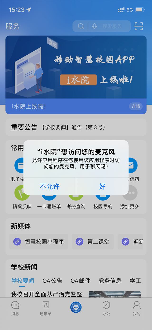 1.点击“i水院”图标,启动i水院APP应用