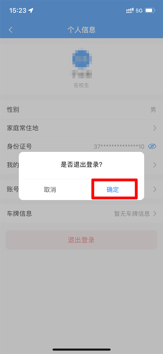 ②点击个人中心右上角退出按钮,再确认是否退出登录。