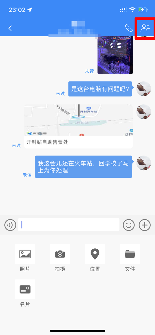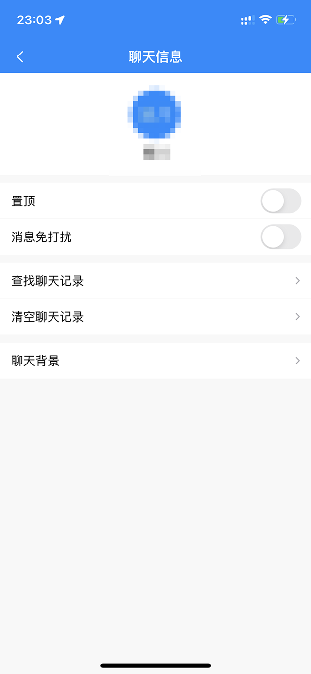 ①点击聊天界面右上角操作按钮,进入聊天信息界面,对聊天信息进行设置。