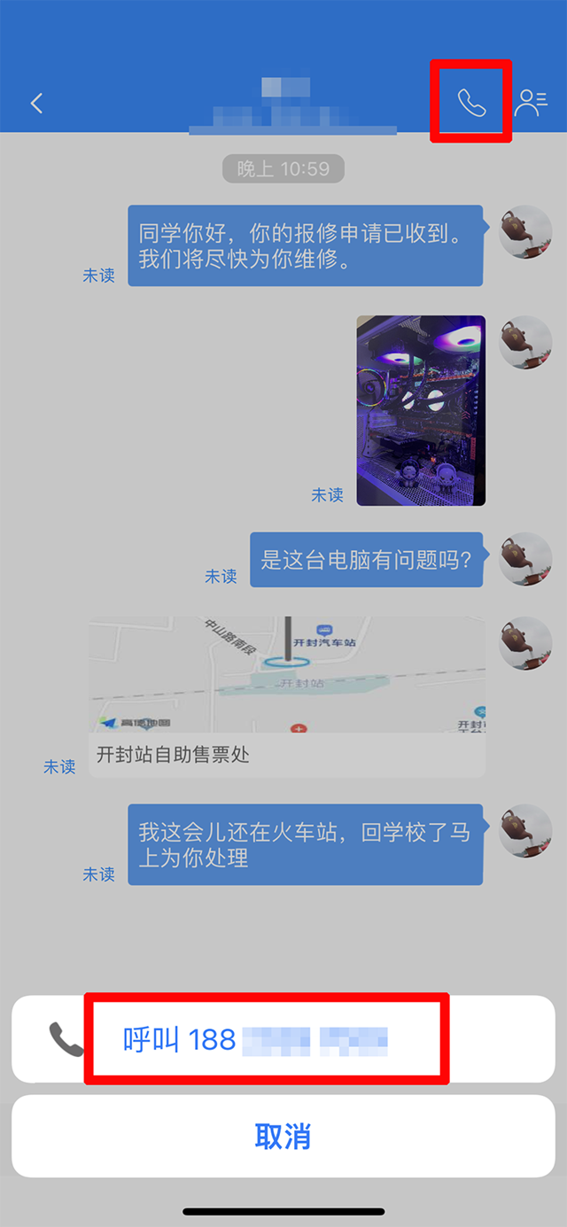 ②如果电话联系对方,可使用通话按钮自动拨号。