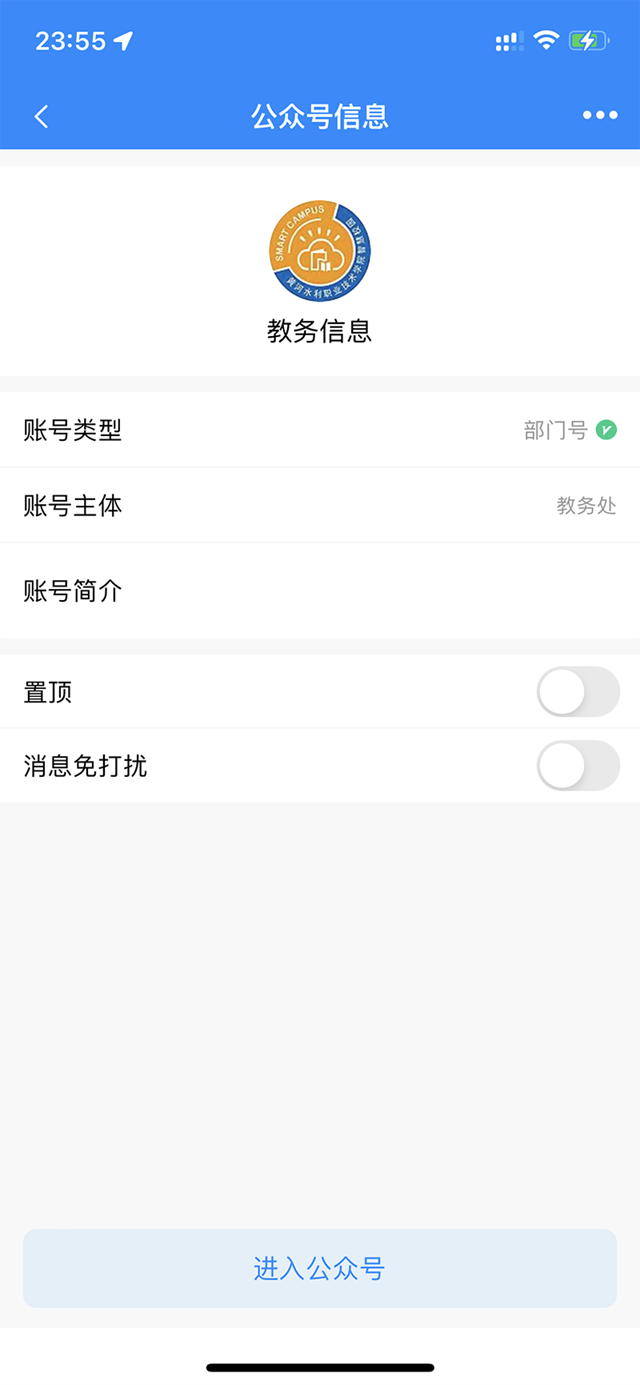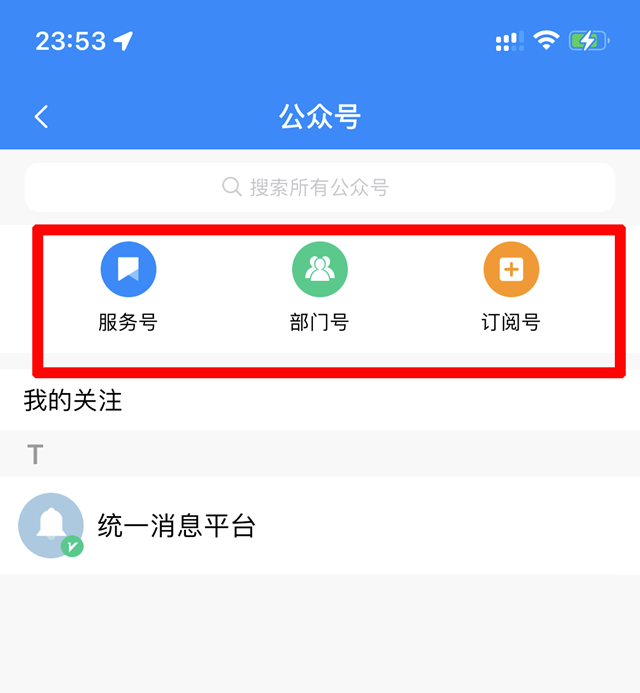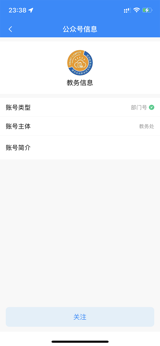 ①在底部导航栏选择“通讯录”进入通讯录界面,点击公众号进入公众号对应列表,点击列表某一个公众号进入详情,点击“关注”进行公众号关注,如下 :