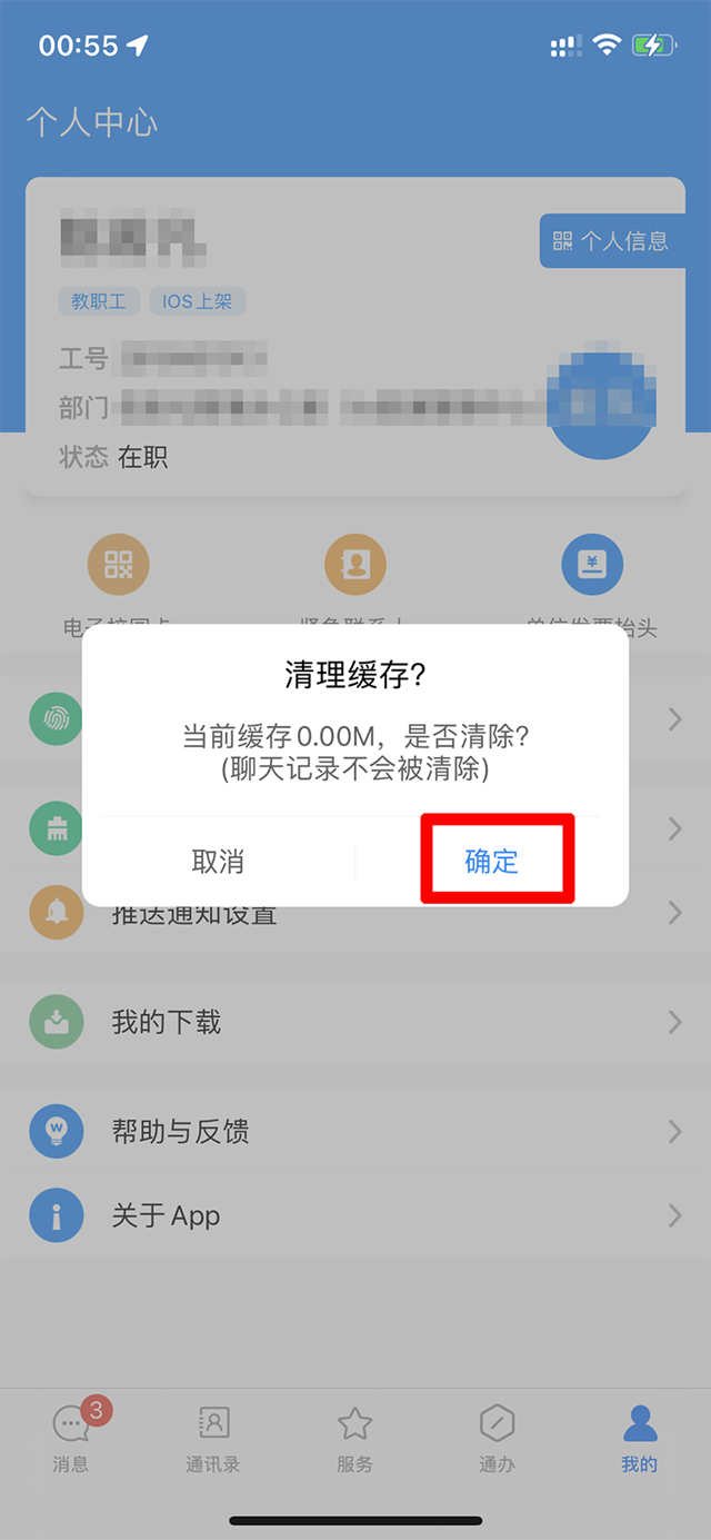 ①在APP使用过程中,可能因为缓存原因导致功能异常,此时需要手工清理缓存。点击个人中心页面—清理缓存,弹出清理窗口,选择是否进行清理。如下: