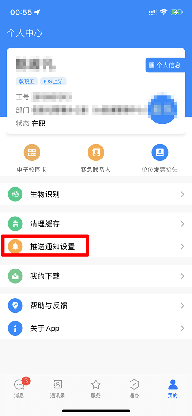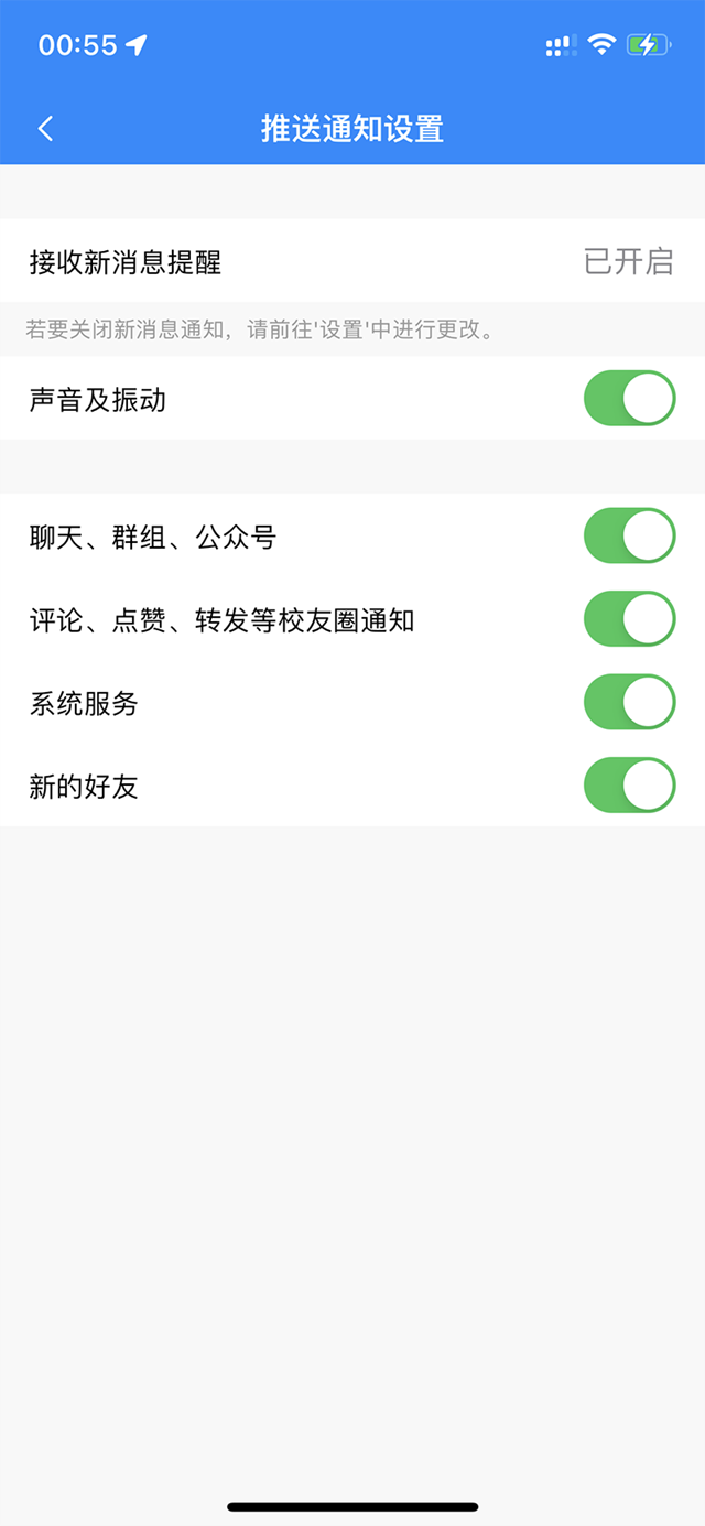 ①点击个人中心页面推送通知设置,进入设置页面。如下: